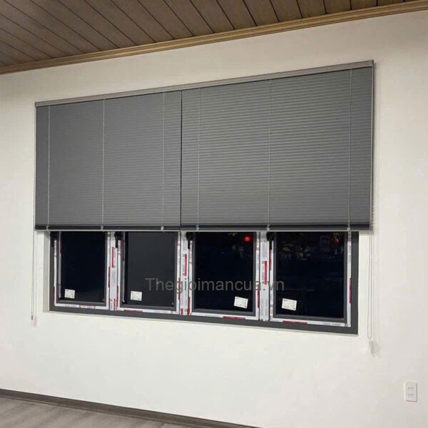 Rèm sáo nhôm hệ 1 dây chống nắng cửa sổ màu xám Xingfa. Dễ lắp đặt, bền đẹp, nâng tầm không gian sống!